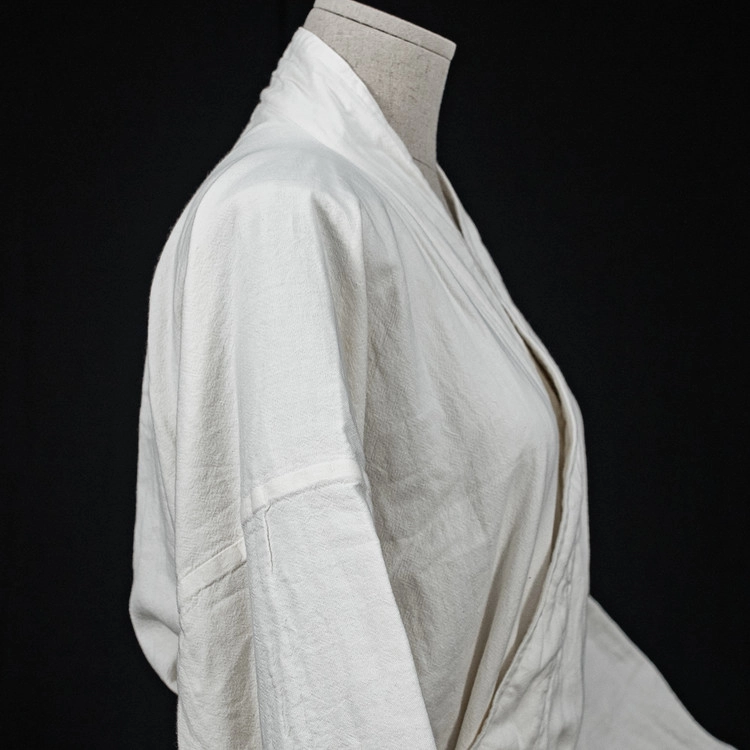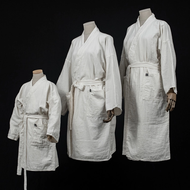 소미당 로브귀덕_바스로브는 강화도에서 1960년부터 3대째 소창만을 다뤄온 연순직물의 소창만을 사용합니다. 연순직물의 소창은 100%목화순면 무형광, 무표백 코마사를 사용하여 먼지가 적고, 통기성이 좋아 건조가 빠르며, 탁월한 흡수력으로 위생 용품에 사용되며 화학가공 없이 옛 방식 그대로 만들어집니다.